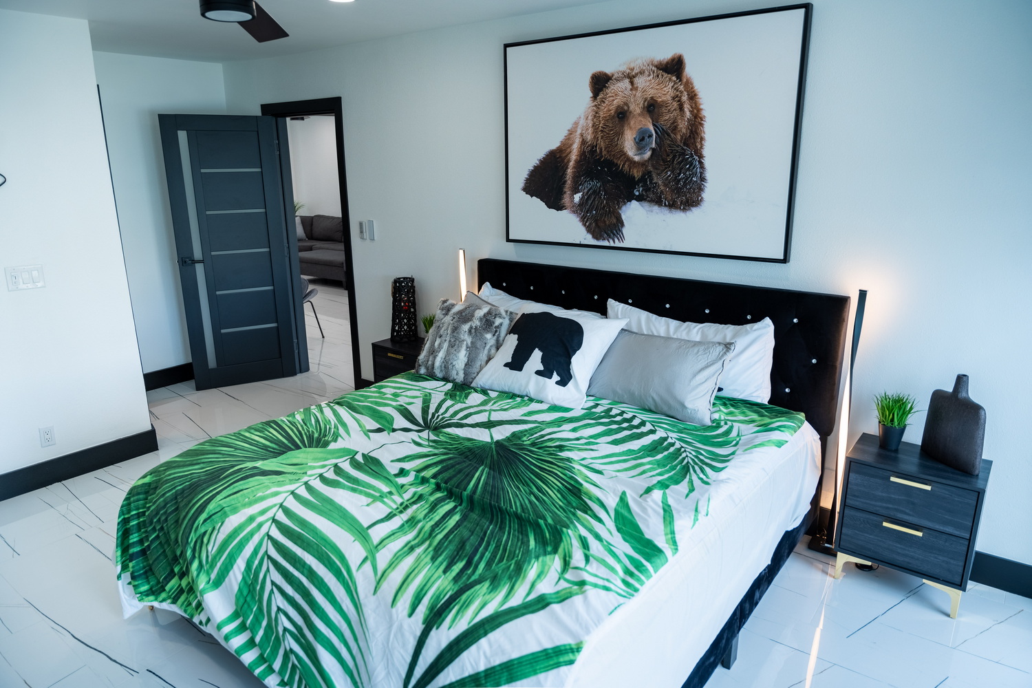 – (1) Queen size bed with Lux Core bedsheets by Brooklinen