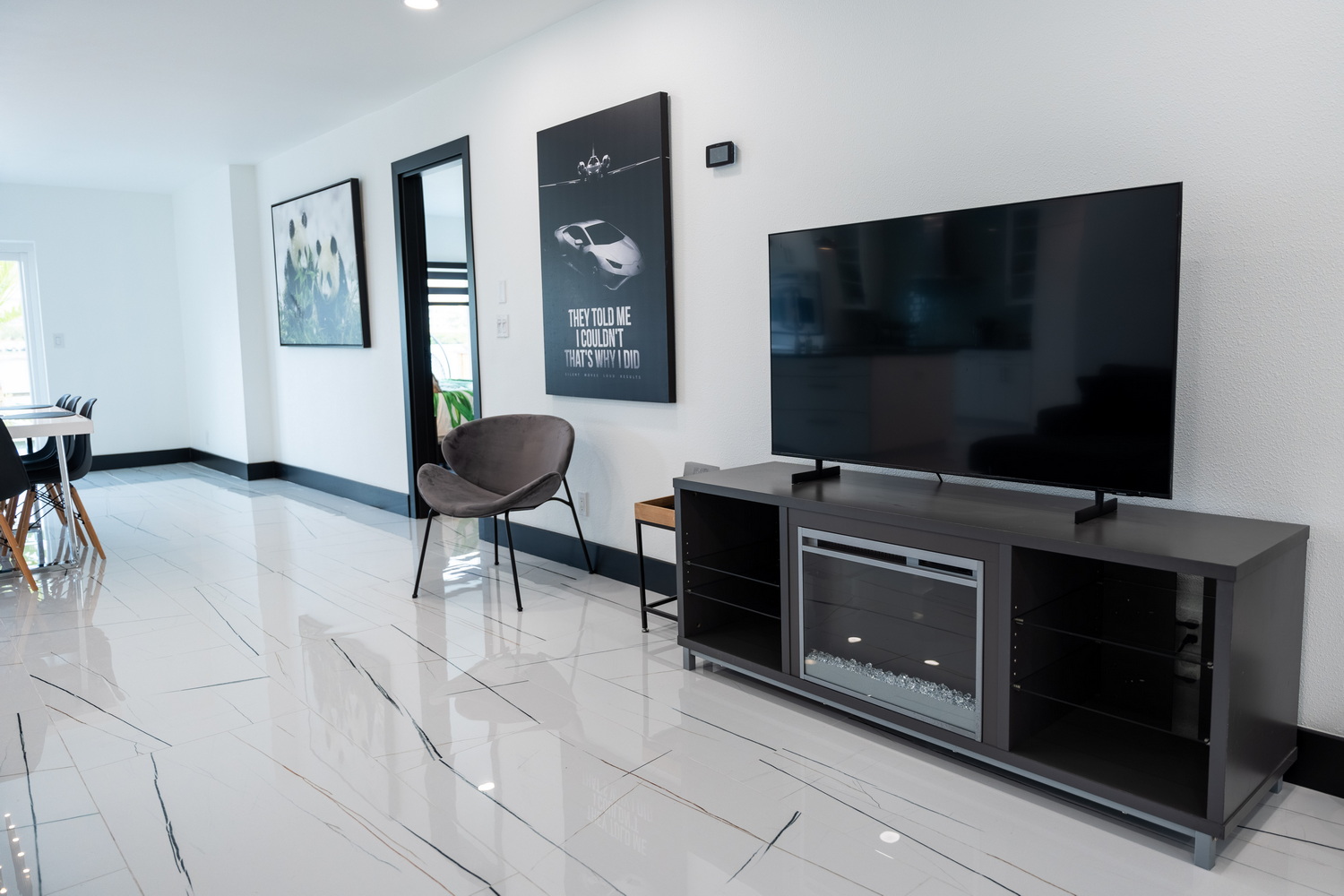 –     55” LED Smart TV w Active Netflix account (all streaming services available to use w your   account)
